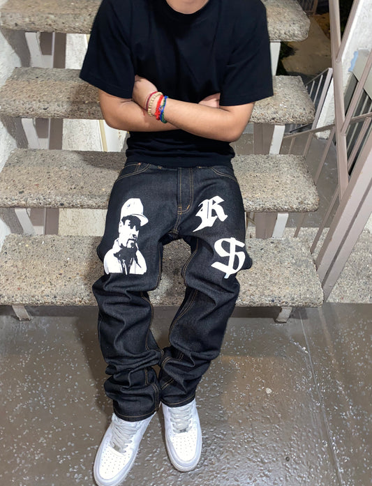 KURUPT $AINTS Classic Straight Leg Style Jeans - White Print